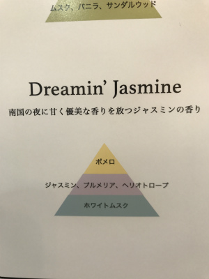 ■Dreamin’Jasmine 南国の夜に甘く優美な香りを放つジャスミンをイメージした香り