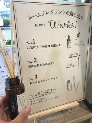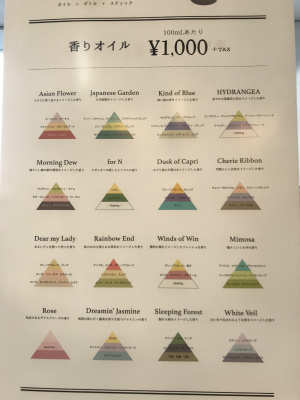 オイルは100mlで1000円+税、ボトル300円+税、スティック150円+税~と組み合わせてお選び頂けます。