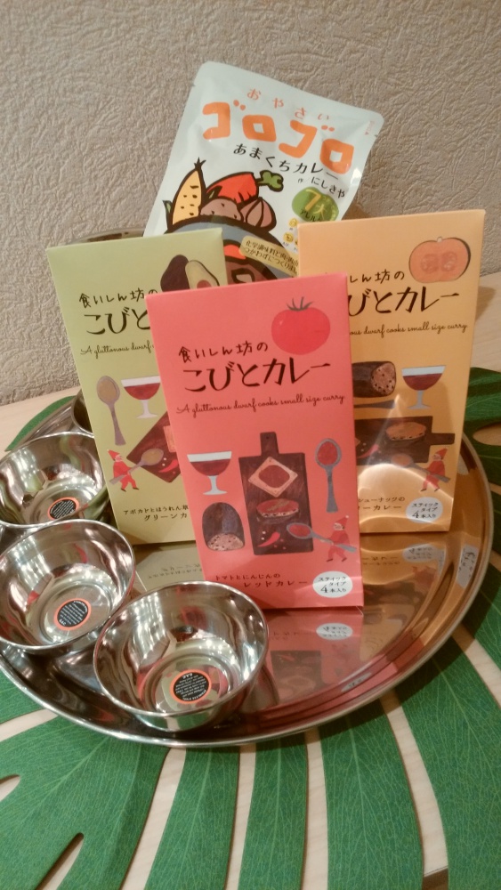 写真下が新商品の、食いしん坊のこびとカレーです。