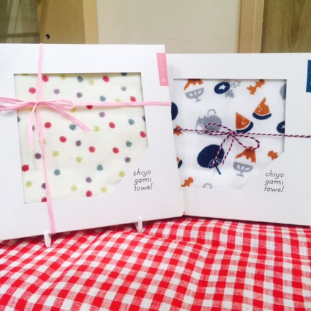 実際に使用するときは、こんな感じになるのではないでしょうか♪♪ 本日ご紹介したタオルは「千代紙タオル」という商品で、3つの特徴があります! ①薄くて軽いためかさばらない! ②乾くのが速い! ③優しい肌ざわり! と、まさに3拍子揃った優秀タオルなのです☆ 持ち運びにぴったりですし、赤ちゃんのようなデリケートなお肌にもお使いいただけますよ~ しかも、安心・安全の日本製です。 毎日使うものだからこそ、素材にはこだわりたいですよね(*^^*)![]()