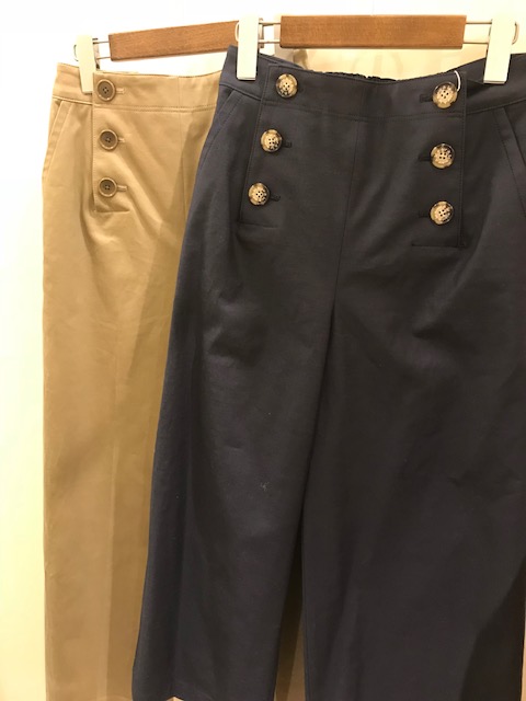 ブランドネームの入った腰のボタンがなんともオシャレ。ウエストまわりもすっきり見せてくれます!