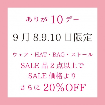 9月8.9.10日限定で、「SALE品2点以上お買い上げで、