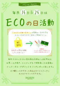 マイバッグをご持参頂いたお客様にメンバーズカードポイントを1つプレゼント致します。