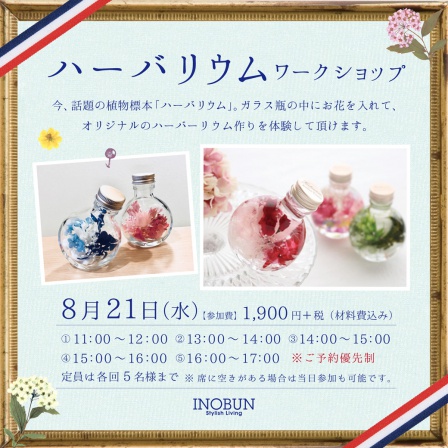 スタッフに「ハーバリウムワークショップの参加について」とお伝えください