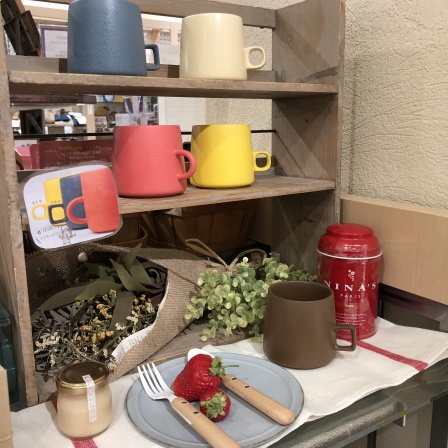 真ん中に置いてあるのは少し縦長なデザインの「かくれんぼマグ」