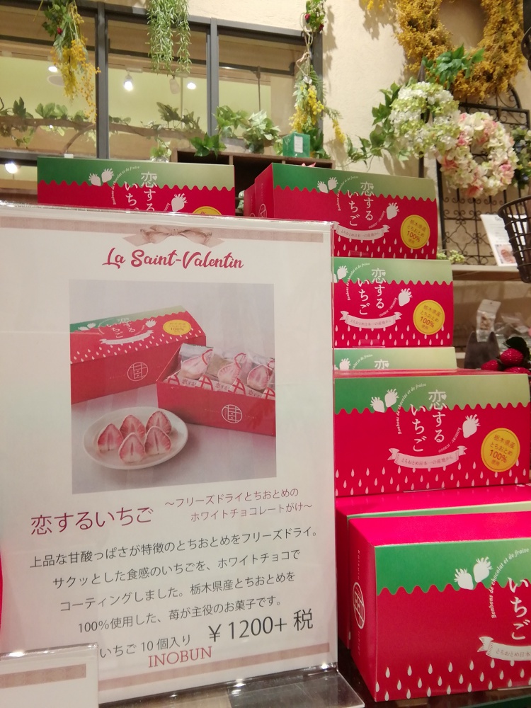 昨年も大人気だった、フリーズドライのとちおとめホワイトチョコレートがけ。『恋するいちご』はすでに手に取られる方も沢山いらっしゃいます🎵