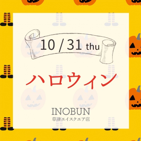 イノブン草津エイスクエア店では、当日、売り場のスタッフに『トリックオアトリート!』とお声がけいただいた方にお菓子をプレゼントします。