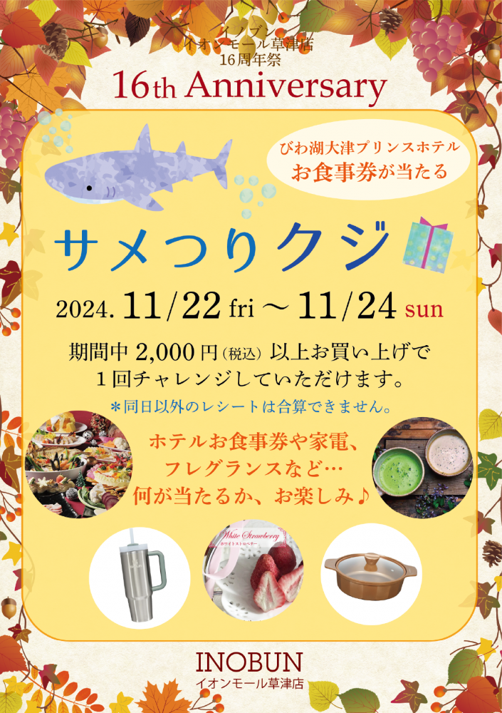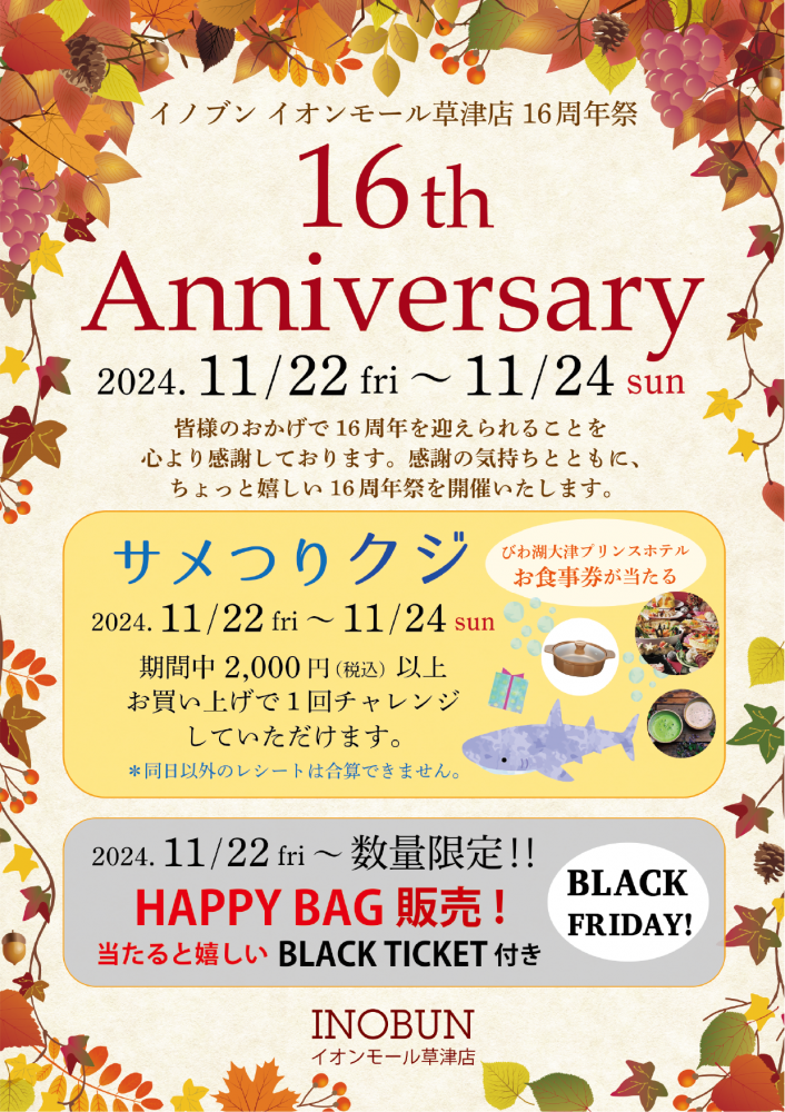 本日は『イノブンイオンモール草津店16周年祭イベント』のお知らせです。