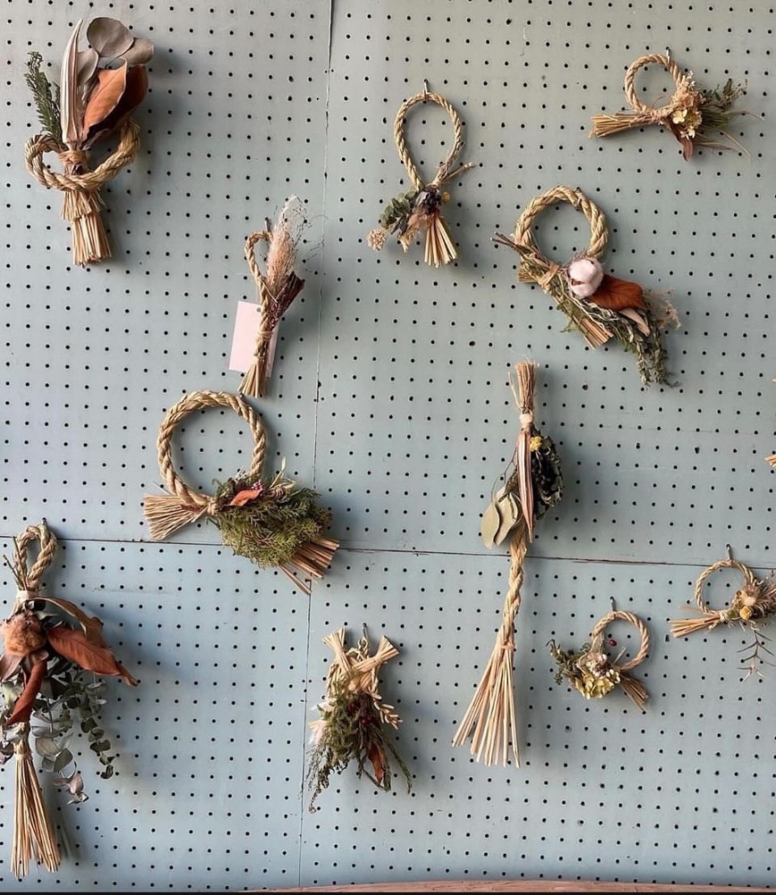 そんなコトノハさんを講師にお招きして、わらで編んだ縄をお好みの形に丸めてから花材を組み合わせてしめ飾りをお作りいただけます。