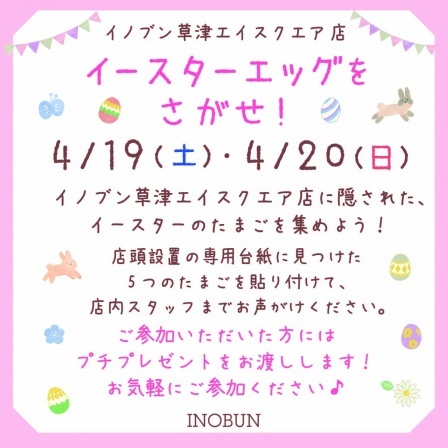 店内にイースターエッグ(たまご)がいろんな場所に隠されているので、5つのイースターエッグを見つけ出して専用の台紙に貼って集めてください♪