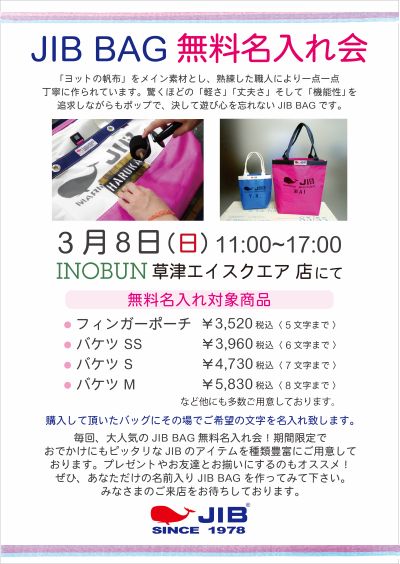 また3/8(日)にはJIB BAGの無料名入れ会を行います◎