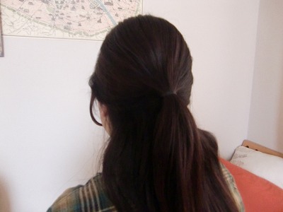 そして、残りの毛をトップの毛束と一緒にひとつにまとめます。