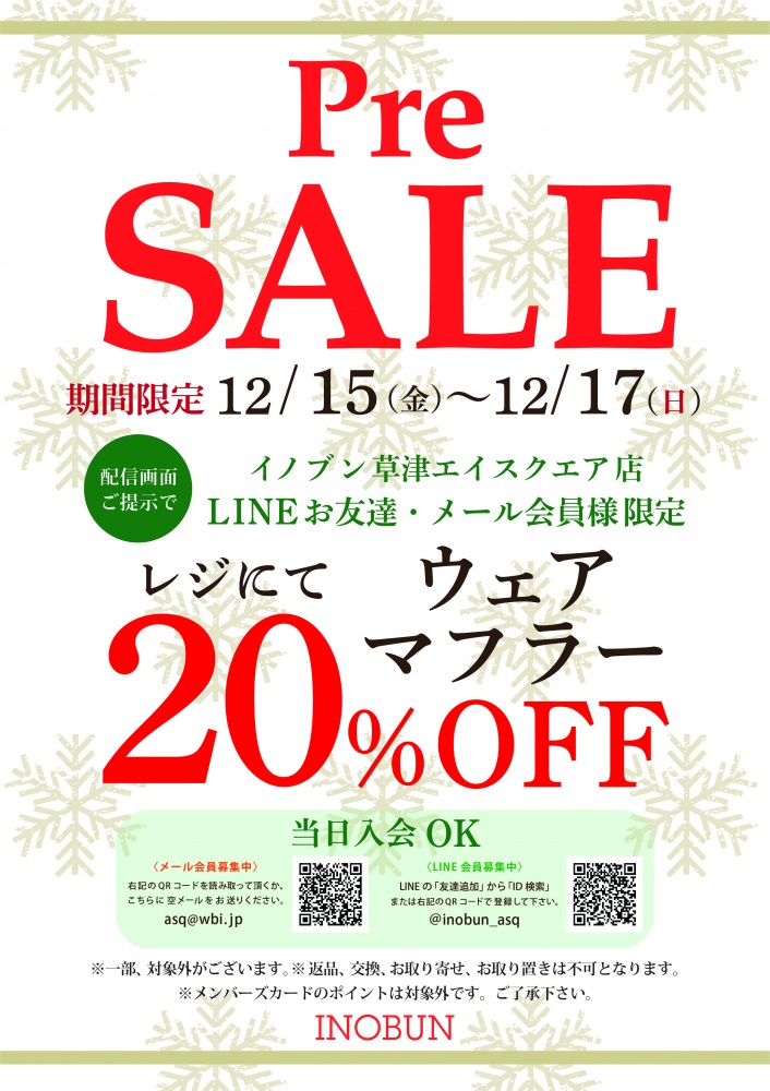 3月7日(金)~11日(火)の5日間、アル・プラザさん春の特招会に合わせてイノブン草津エイスクエア店も、とってもお得なセールを開催いたします。