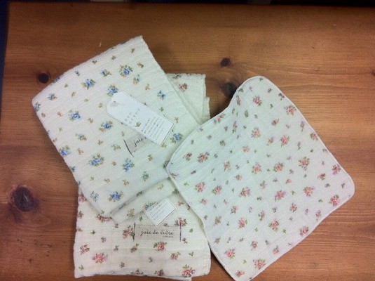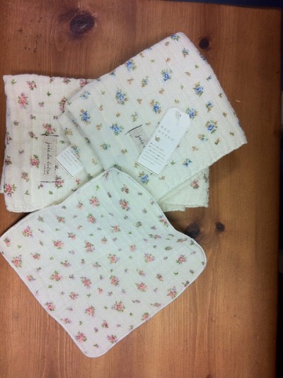 この小花柄以外にも、チェック柄もあり、ぜひ柄おそろいで贈り物にしていただきたいです。お店に来た際にはぜひ、タオルの新触感を触ってみて下さい。