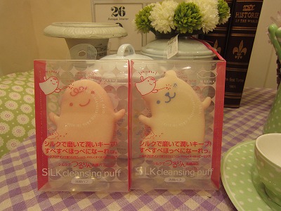 続いてはこちら「シルクでつるりん洗顔パフ」ピンクベビー、ホワイトベア