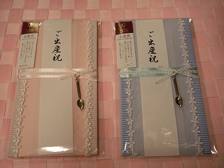 赤ちゃんがはじめてのひと口に使うと、一生暮らしに困らないと言われる「シルバースプーン」の飾りがついた、ちょっと凝ったデザインの祝儀袋なんです☆