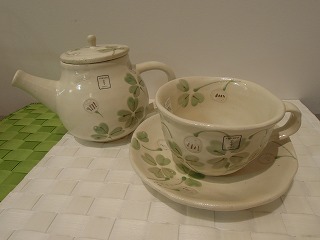 器の四つ葉のクローバーを見ながら、みんなが幸せいっぱいな気分になれますよ^^
