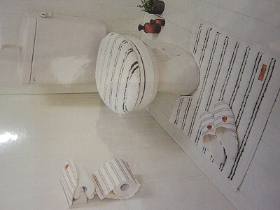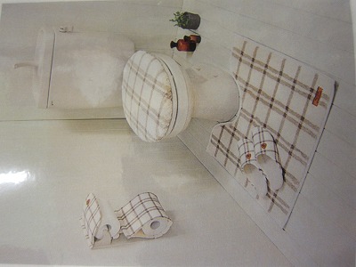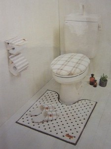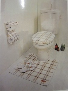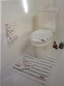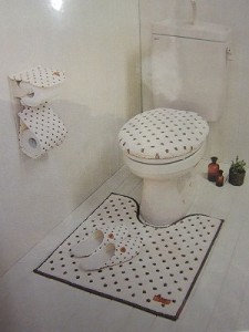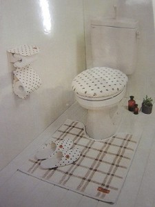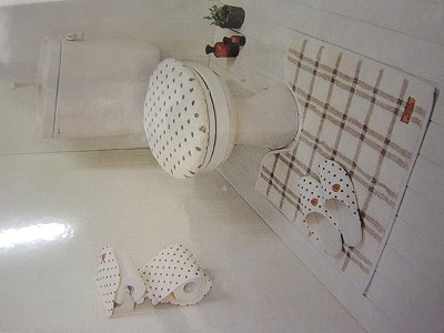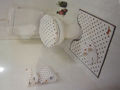 でも例えば、フタカバーとペーパーホルダーとスリッパは水玉で、トイレマットはチェック、とか。