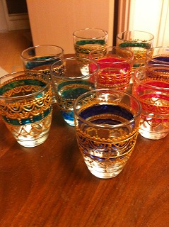 グラスにガラス用の絵の具で色を塗り、同じくペンタイプの絵の具で模様を描いてモロッコ風グラスを作ってみました♪
