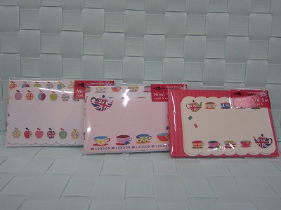 イギリスのユニオンジャック柄のリンゴやティーカップ・ポットのかわいいカードです。