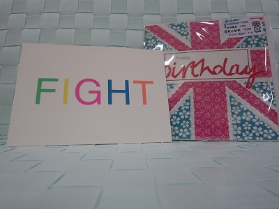 こんな、バースデーカードもありますよ♪それに、FIGHTの文字入りポストカード。
