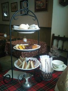 カフェでアフタヌーンティーをして休憩しました。カントリー調のインテリアのこじんまりした