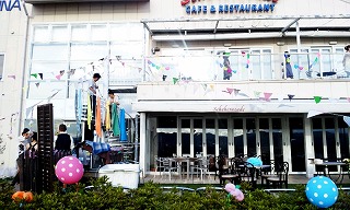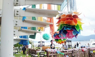 家にある生地でそれぞれが旗を作って会場じゅうにめぐらせました!