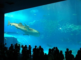 こちらは世界一大きな一枚ガラスを使ったというジンベエザメの水槽です。
