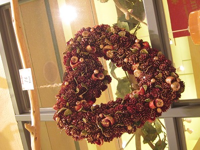 木の実たくさんのリースや、パープルのお色のリースも!