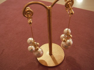 大きさの違う淡水パールがたくさん付いていて、ボリュームたっぷりなアクセサリー!