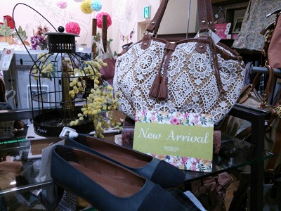花柄のレースがとても印象的で、デザインもとても凝っており当店スタッフにも好評のバッグです。