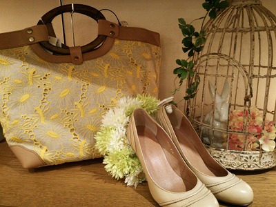 ローズ柄のきれいなレースで春・夏のファッションにさわやかな印象で持てるバッグです。