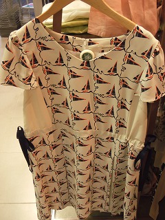 ヨット柄って…て思いになるかもしれませんがベーシックなカラーで出来ているので派手でなく着やすいワンピースになっています。両サイドにワンポイントでリボンがついています。