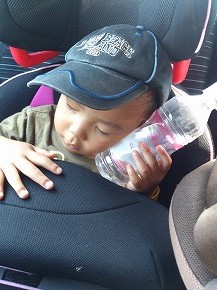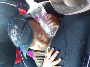 お水を片手にスヤスヤ・・・・・・・夜になると夏祭り!!