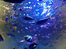 宮島水族館では、カラフルな水槽があって、思わず写真をパシャリ。