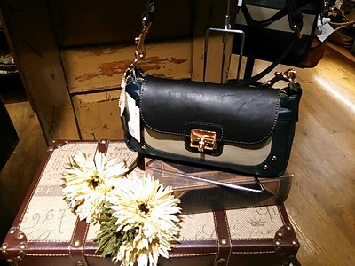 アンティーク調の革の表情がハードさを和らげてフェミニンな仕上がりになっています。