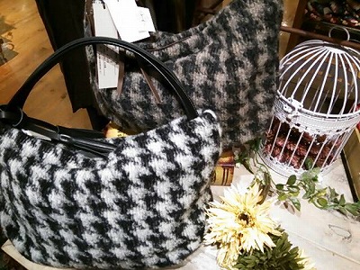 千鳥格子柄が柔らかな表情を醸し出す、ニット素材のbag。イタリア製の生地を使用しています。