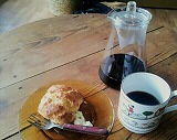 でも、友達のお店『GOOD FOOD』のスコーンに、バターとハチミツをかけたのと、飲むと目が覚めるので必ず飲むコーヒー。