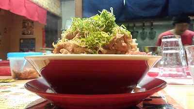 麺の上にてんこ盛りにあ肉がのっていて
