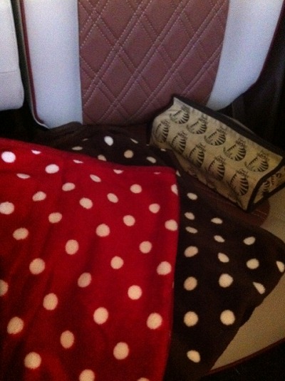 赤とブラウンのブランケットとベージュのティッシュカバーです☆