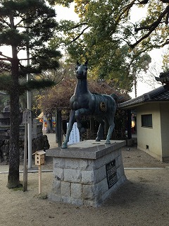 去年はこの馬の銅像の左前脚に、人参がひっかけられていたのですが