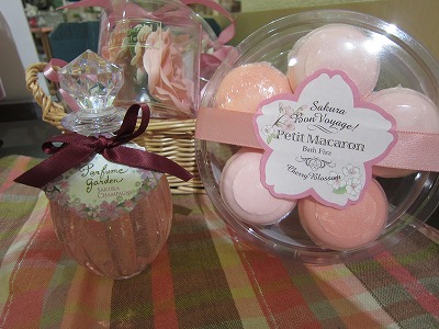 5つのマカロンがさくらの形をしてるように詰められている手前の商品は入溶剤!