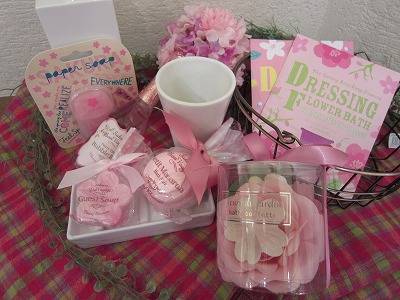 桜の形をしたボディソープから入浴剤、バブルバス、、、