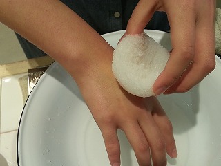 こんにゃくの様に袋をお肌にクルクルさせます。