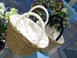 パールの持ち手が人気のカゴバッグです♪