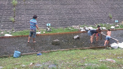 泳いでいる鮎を捕まえるのですが、泳ぎがとても速く、手で捕まえる事が出来ず結局網で捕まえる事に…(。>д<)