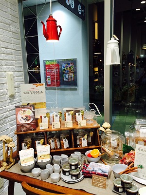 ポットのライトに照らされて、美味しいグラノーラが輝いています♪