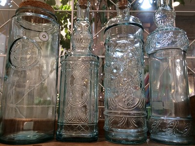 木製のトレイ、ボウルとガラス製のキャニスター、ボトルです。