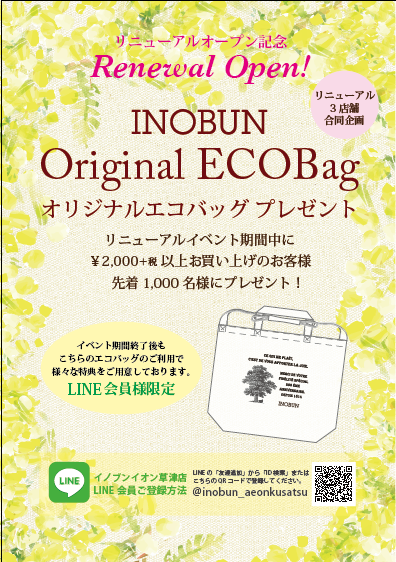 皆さんが新しいイノブンイオンモール草津でより一層笑顔になれるよう、