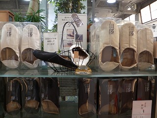 父の日の贈り物にピッタリの革でできたルームシューズが並んでいます♪